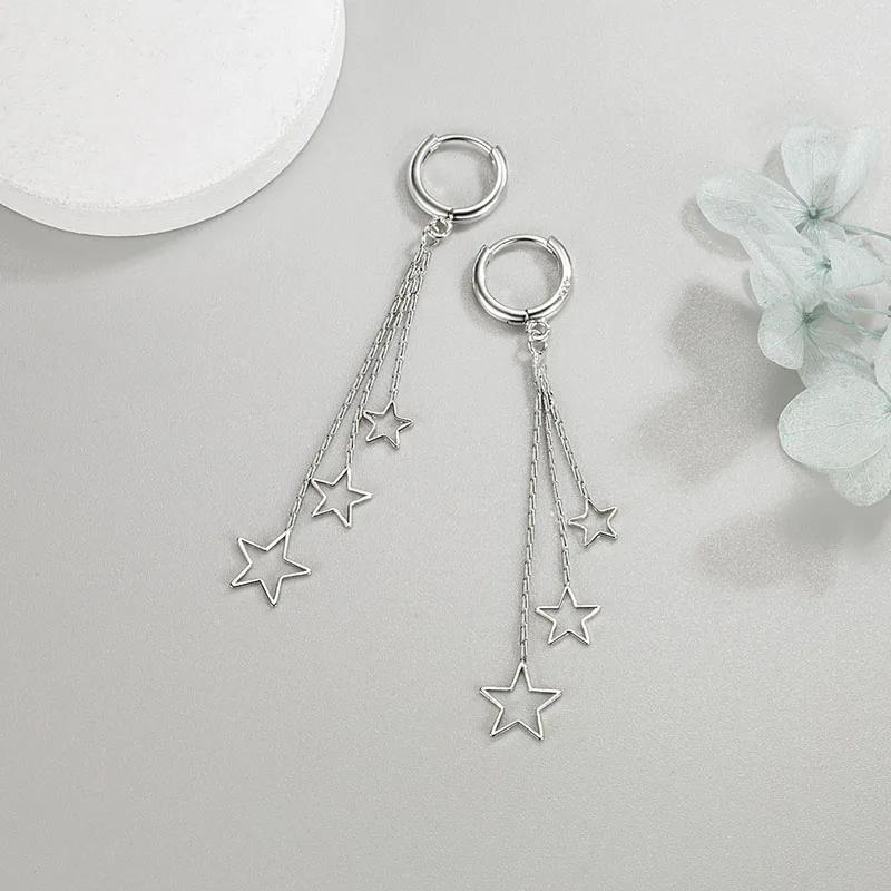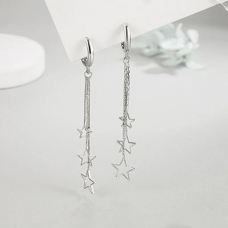 Элегантные Популярные Серьги-кольца с тремя звездами для женщин 925 стерлинговое серебро Праздничные украшения Красивые длинные серьги с кисточкамиЭлегантные