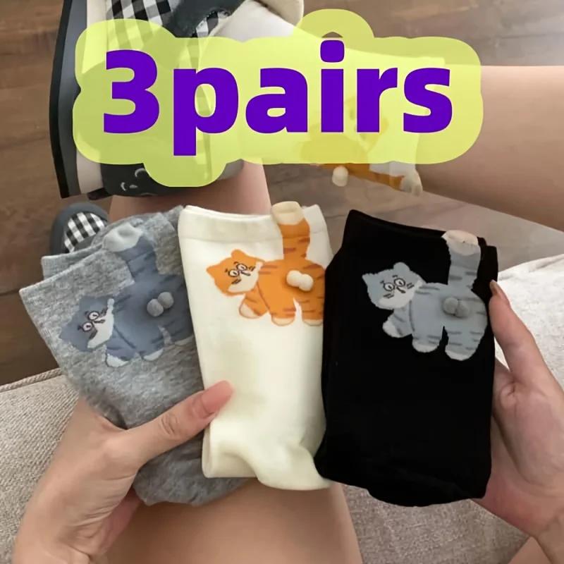 3 пары милых носков с мордочкой кошки - мягкие забавные носки с животными, новинка, с табби, разноцветные (Серый/Белый/Черный) для женщин и мужчин