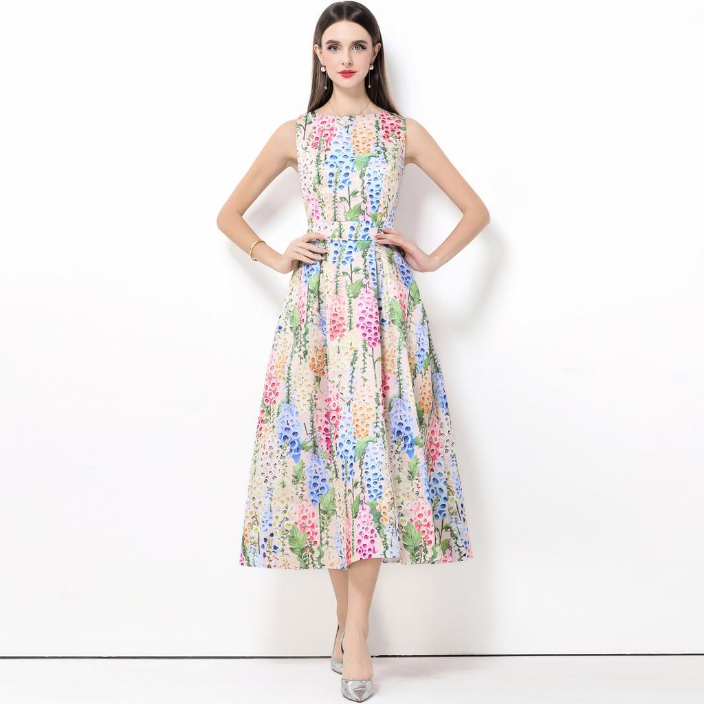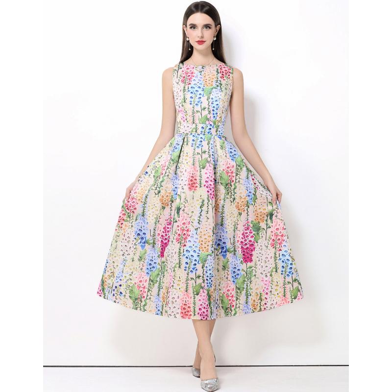 Летнее женское дизайнерское платье с принтом, без рукавов, с высокой талией, длинное макси, с большим подолом, платья-майки для вечеринок