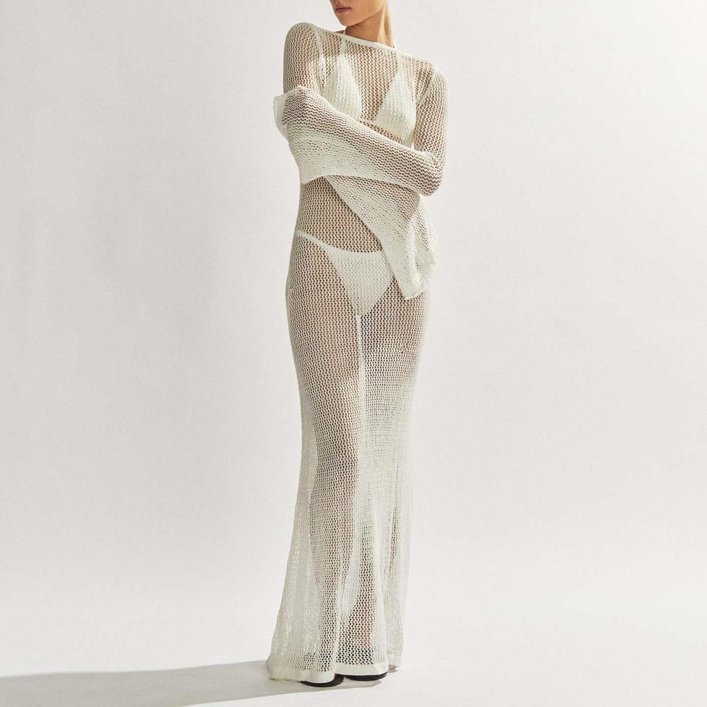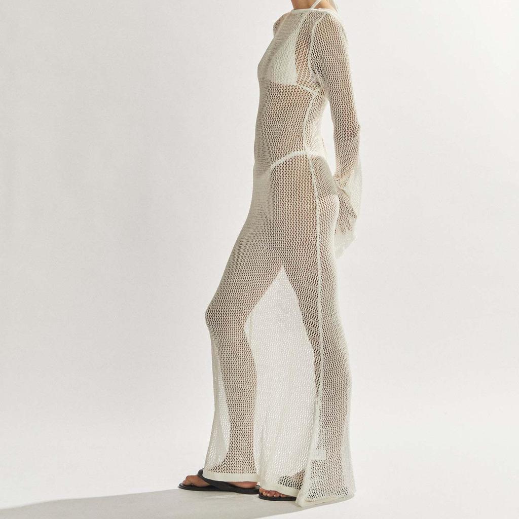 Женское вязаное крючком сексуальное платье с открытой спиной и вырезами, элегантное летнее пляжное праздничное платье макси