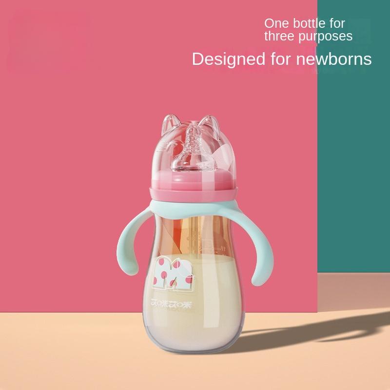 160/240/330ML Baby Bottles Feeding Bottle Baby Wide-caliber Milk Bottle with Straw Handle Newborn Baby Straw Bottle Accessory