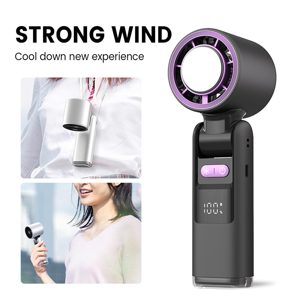 Portable Foldable Handheld Mini Turbo Fan with Ice Compress 4000mAh USB Rechargeable 100 Speeds Wind Outdoor Ice Cooling Fans