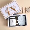Christmas Gift Box 55 ℃ Thermostatic Cup with Lid Ceramic Cup with Spoon Coffee Cup Portable Meal for Office or Home Use