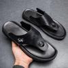 Модные мужские шлепанцы, кожаные тапочки, повседневная пляжная летняя обувь, мужские нескользящие удобные классические черные шлепанцы на плоской подошве, большие размеры
