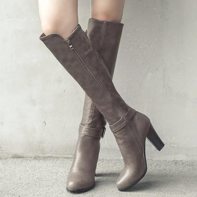 2024 модные высокие каблуки женские сапоги до колена из искусственной кожи офисные женские туфли весна-осень сапоги женские большие размеры 34-43 63
