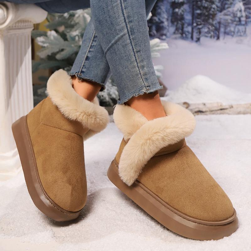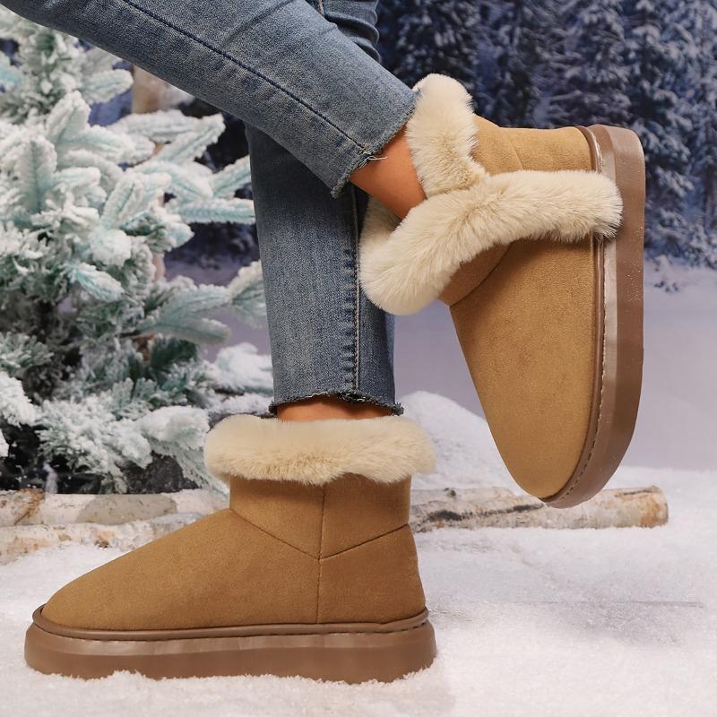 2024 Модные женские зимние сапоги на толстой подошве из пушистого плюша, зимние новые стильные удобные и теплые женские сапоги
