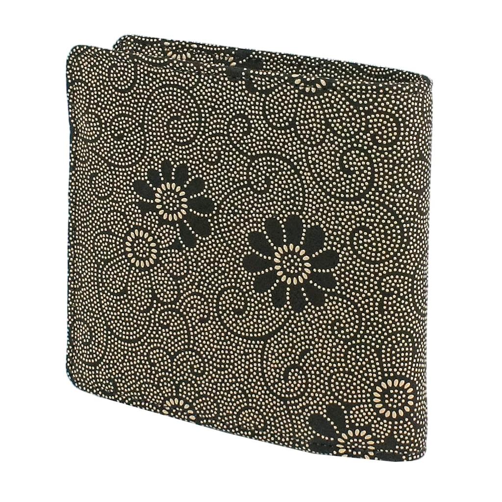 [Inden-ya] Кошелек бифолд Инден с маленьким отделением для купюр и кошельком для монет в форме коробки, кожа оленя, черный с белым лаком, хризантема