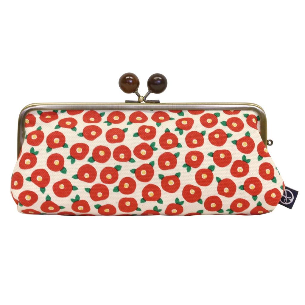Japanese Flower Horizontal Pouch with [Maeda Senko] [Goshiki Hanpu-do Series] 6.3-inch Mouth, Mame-Tsubaki (Camellia)