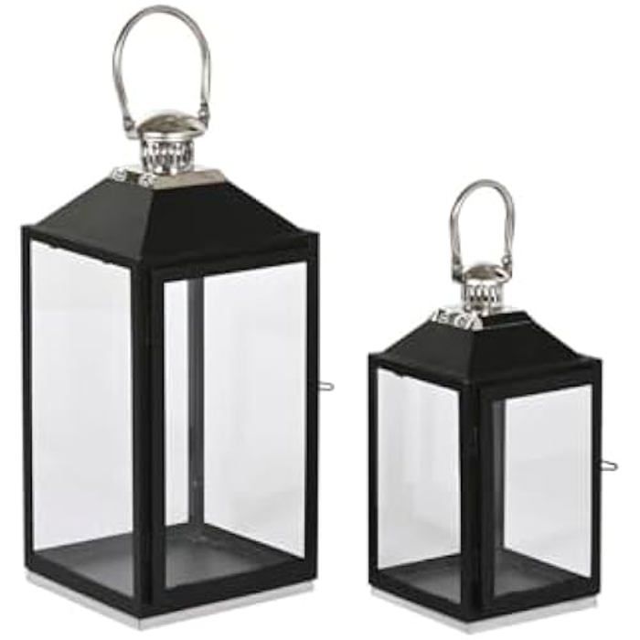 Lanterne - HOME ESPRIT - Noire argentée - Verre - Acier - 18 x 18 x 41 cm (2 pièces)
