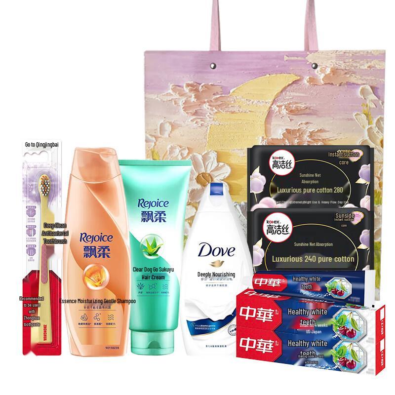 Откройте для себя подарочный набор средств личной гигиены P&G Осень/Зима, комплексную коллекцию, разработанную для питания и восстановления. В этот набор входят такие необходимые предметы, как шампунь, кондиционер, гель для душа, зубная паста, зубная щетка и гигиенические прокладки.. Обладающий свойствами контроля жирности, увлажнения и гидратации, он подходит для всех типов волос и различных типов кожи, что делает его идеальным социальным пакетом или корпоративным подарком.