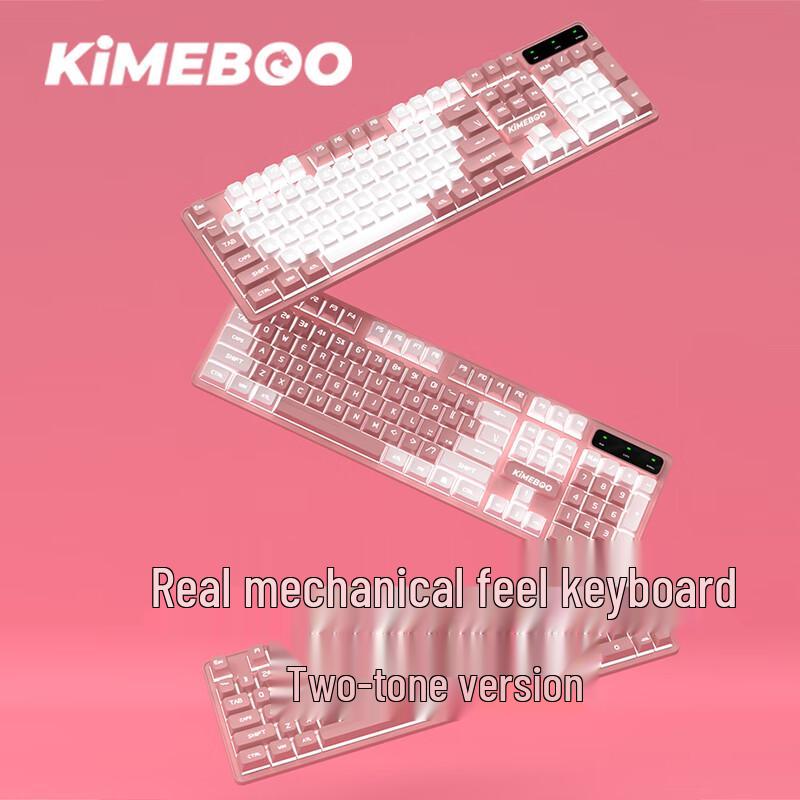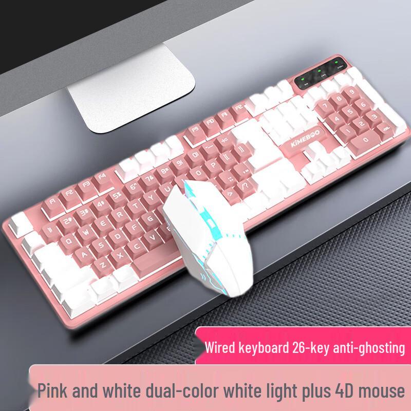 YouShi Wired Silent Mechanical Keyboard & Mouse Combo - Pink & White