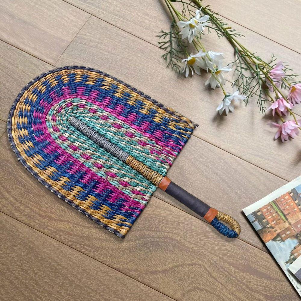 Красочные полосатые узоры Ручное плетение Веер Богемный Веер из рогоза Реквизит для фото