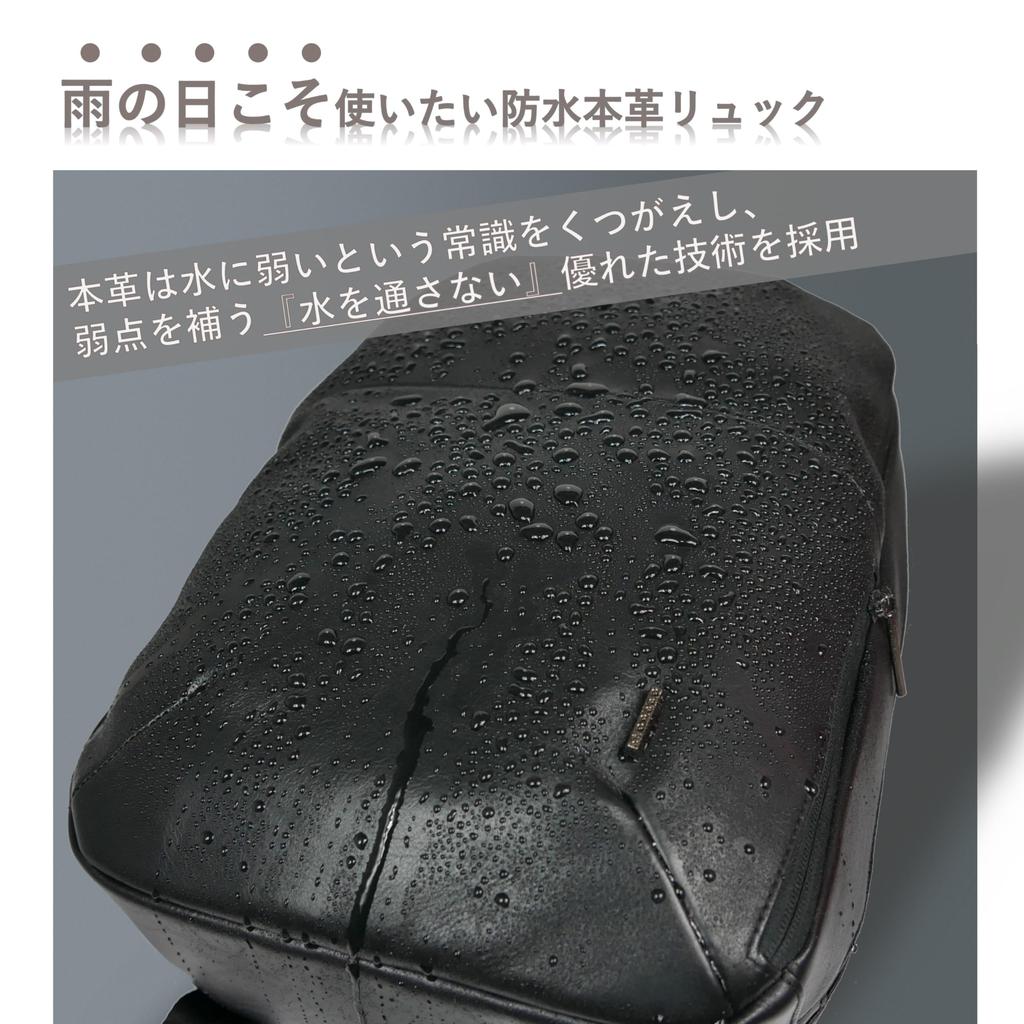 [Waterproof Genuine Leather] You no longer have to hesitate to use genuine leather products, even on rainy days. This superior technology overcomes the common belief that genuine leather is vulnerable to water and makes it watertight. A waterproofing solvent is applied to the leather from the tanning stage, penetrating it to the subcutaneous layer, ensuring semi-permanent waterproofing. Note: This product is not completely waterproof, so water may seep in through gaps in zippers or seams.