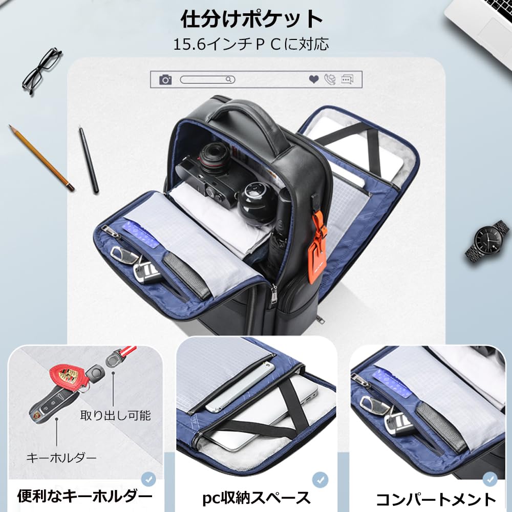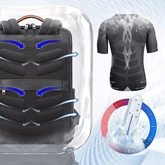 BOPAI Men's Commuter Backpack, 15.6-inch Laptop Backpack with USB Charging Port, Large Capacity, Day Bag, Laptop Backpack, Black