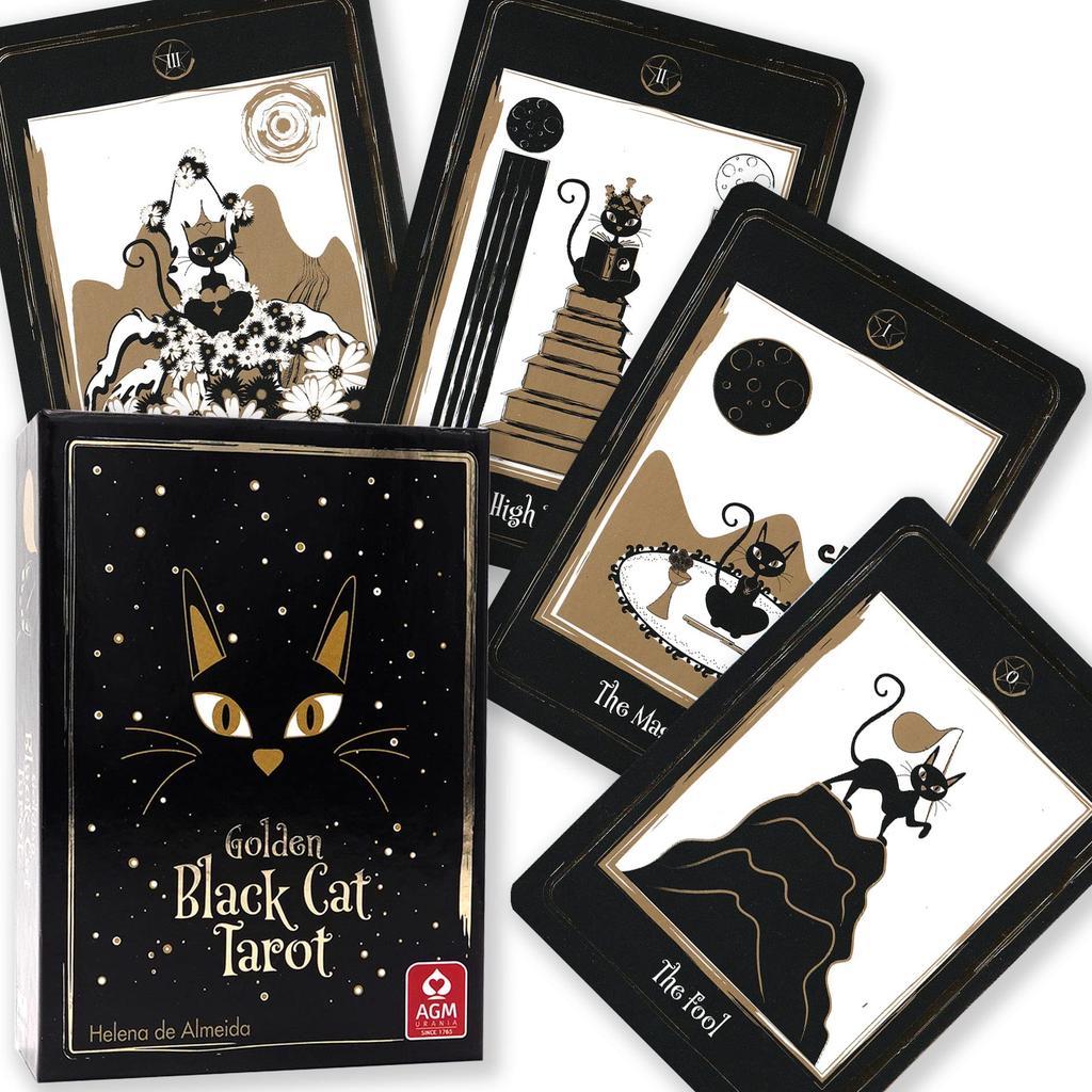 Эта карта Таро имеет поп-дизайн с черным котом и роскошную золотую печать.