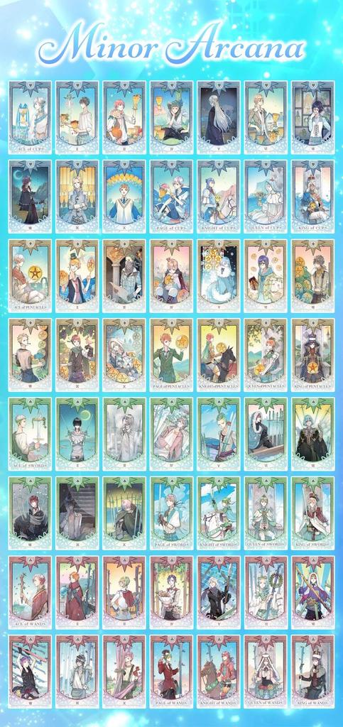 The fantasy world of tarot cards will envelop you and bring healing and enrichment to your life. All 78 cards, including the Minor Arcana, feature original male characters.