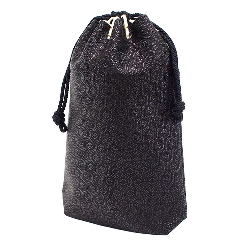 [Inden-ya] Мешочек на шнурке Inden с ластовицей, шелковый шнур, кожа оленя, черный с черным лаком, узор «черепаховый панцирь», 3005-01-003