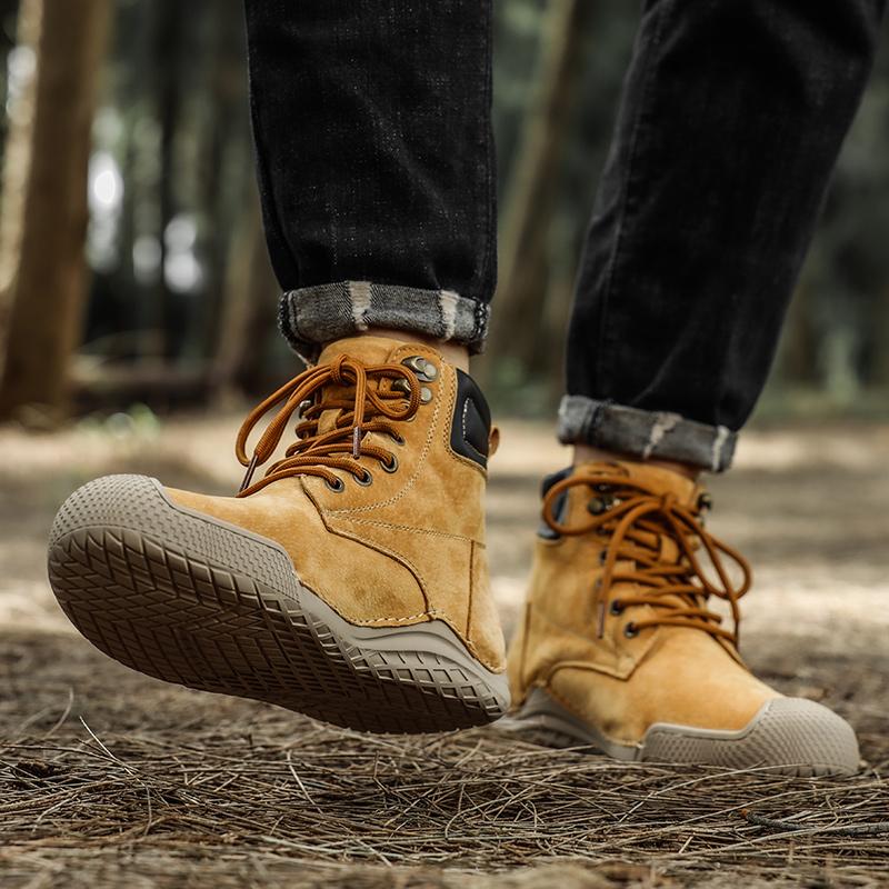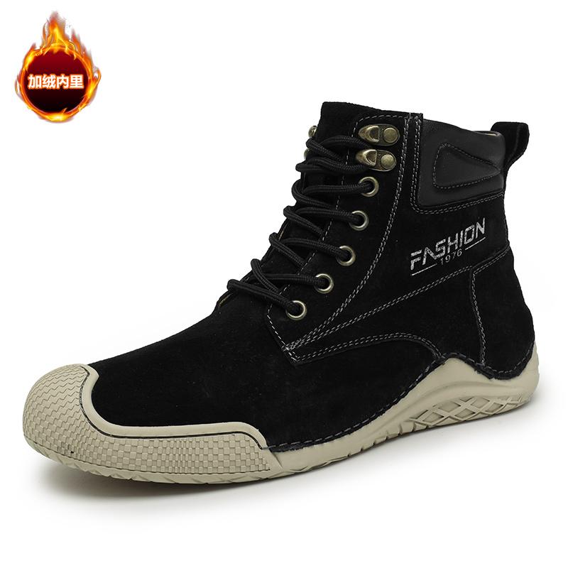 2024 Теплая плюшевая кожаная повседневная обувь для мужчин, высокие сапоги ручной работы, удобные ботильоны, модный дизайн, походная ковбойская обувь для отдыха на природе