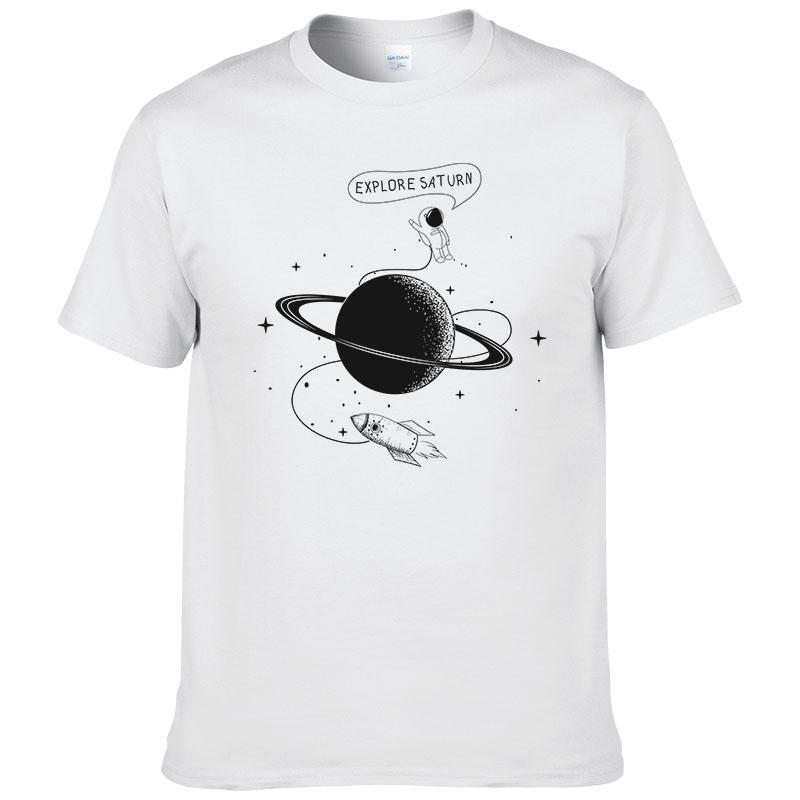 Астронавт Исследует Сатурн Футболка Мужская летняя с коротким рукавом модная футболка Хлопок Прохладные футболки Топы Одежда бренда #226