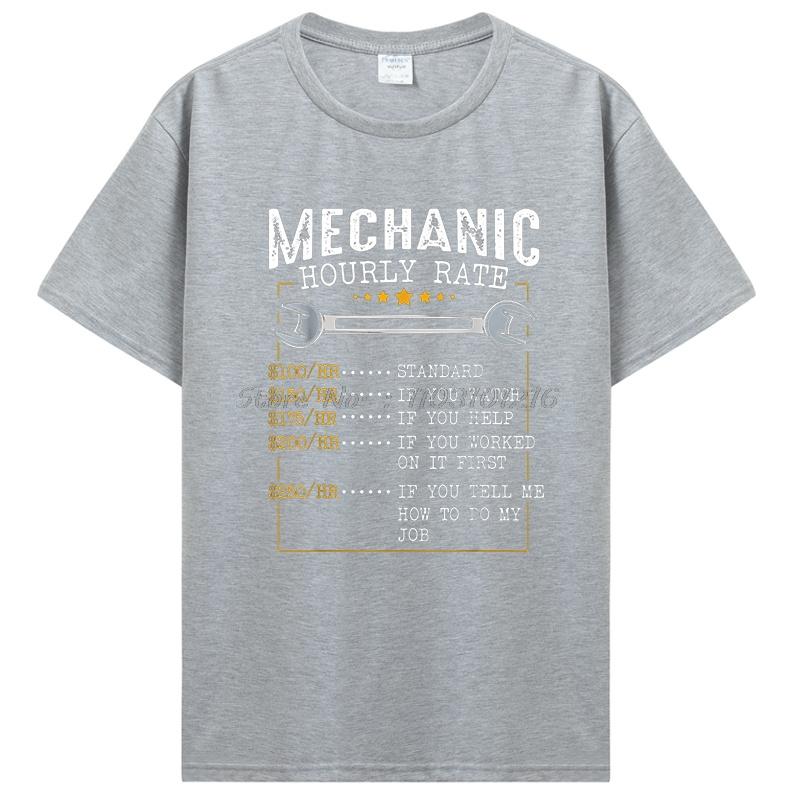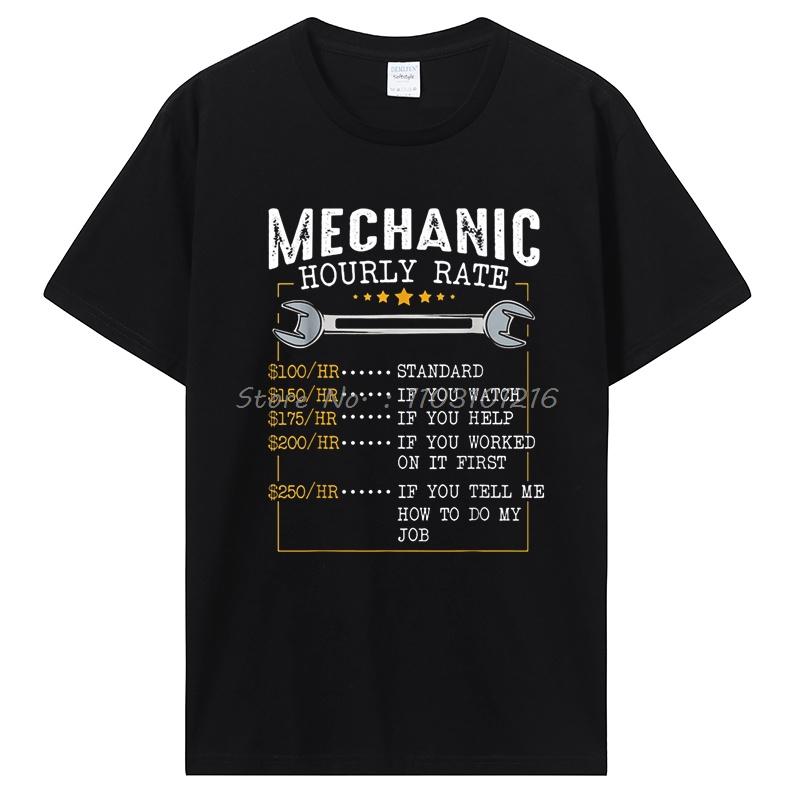 Почасовая ставка механика Ставки труда Смешные рабочие Футболка с надписью «Автолюбитель» Футболка из хлопка с коротким рукавом Мужская одежда Большие топы унисекс
