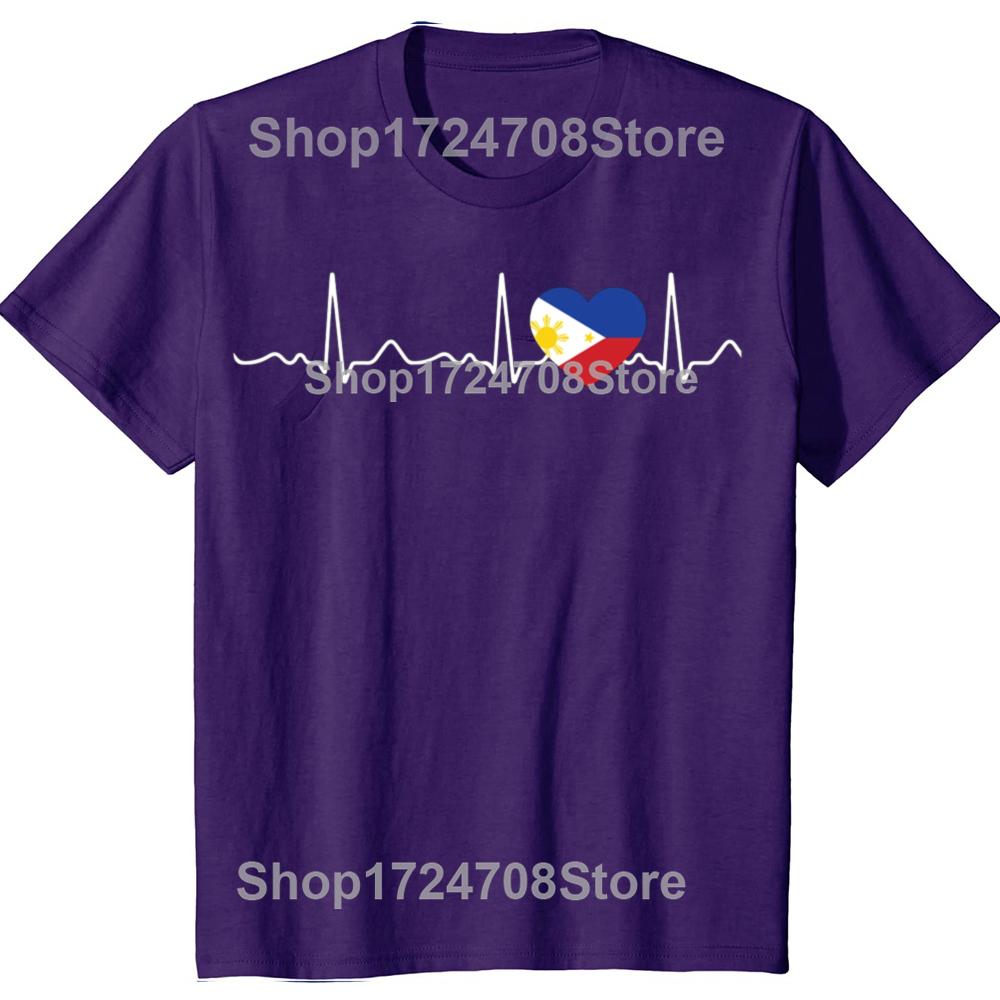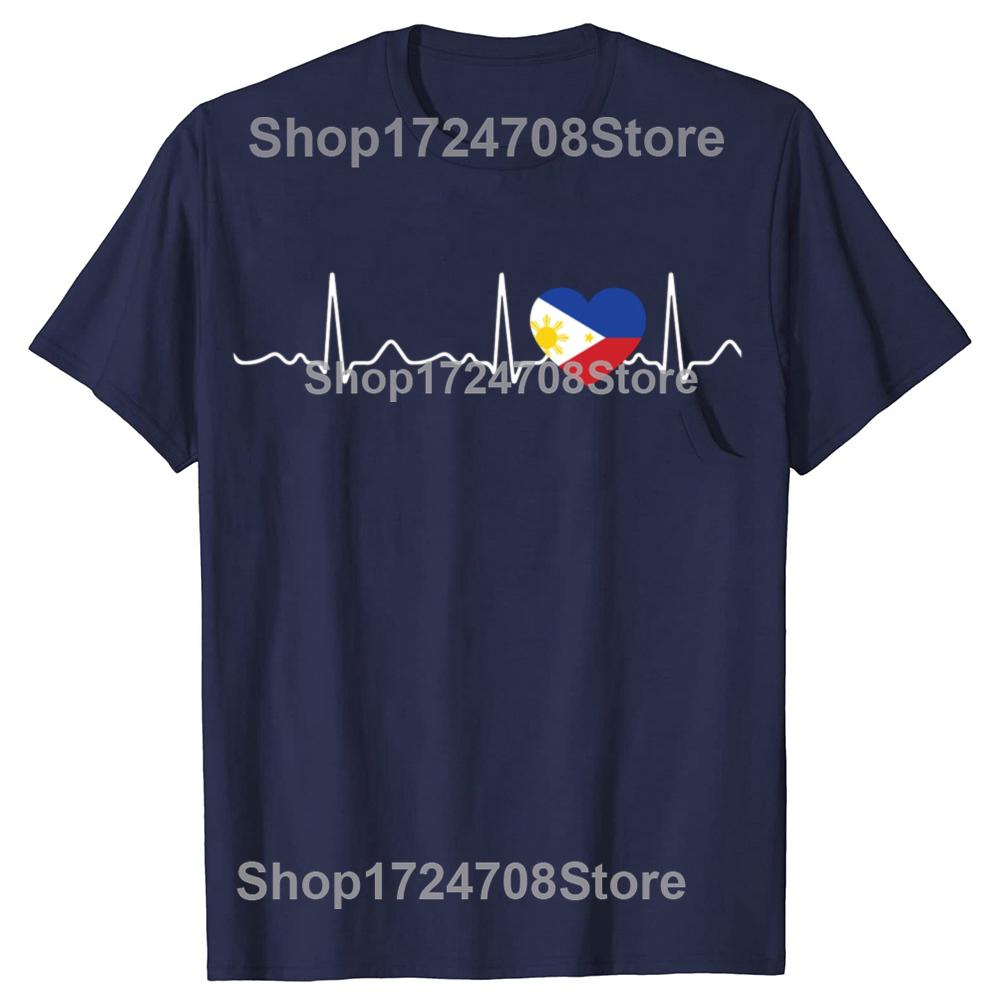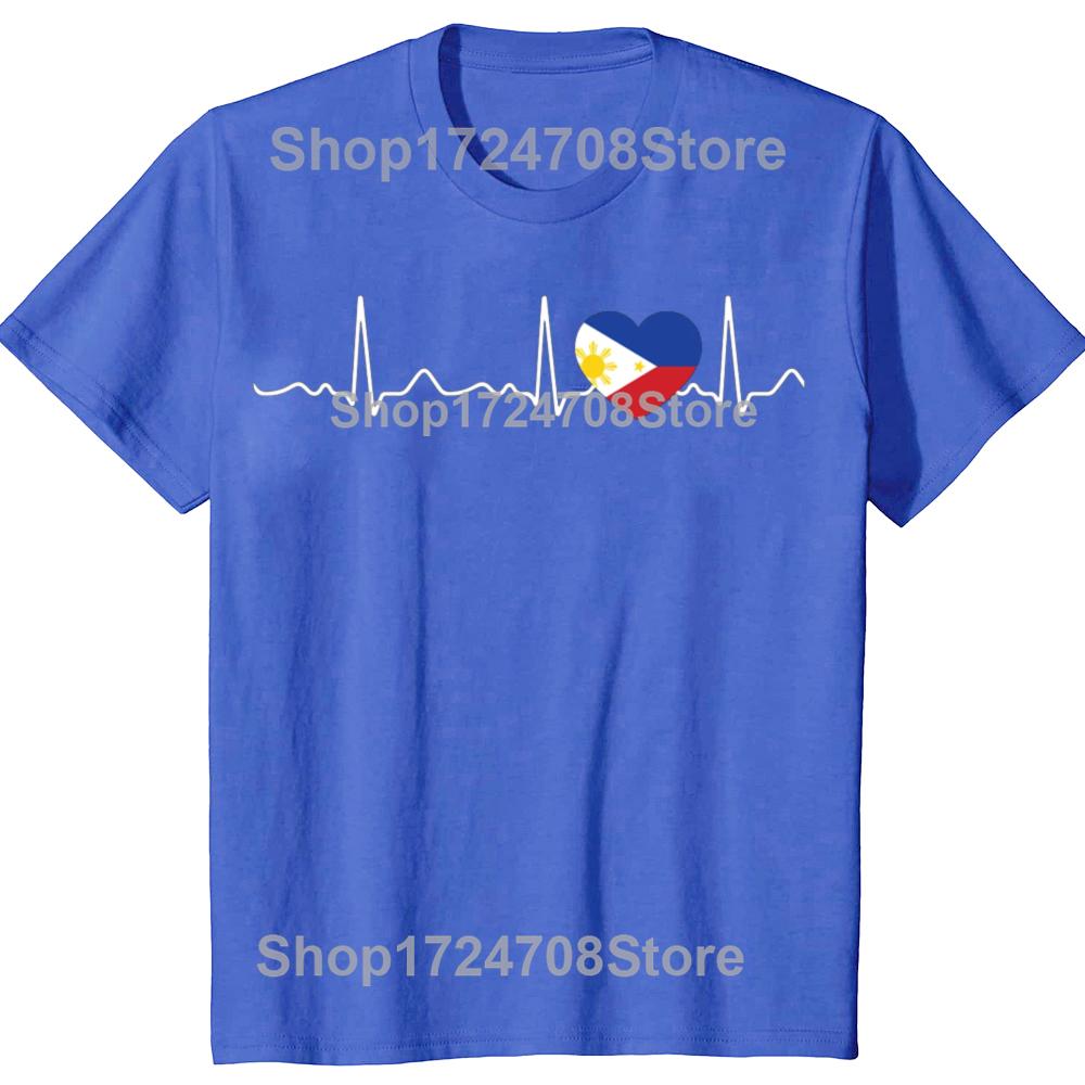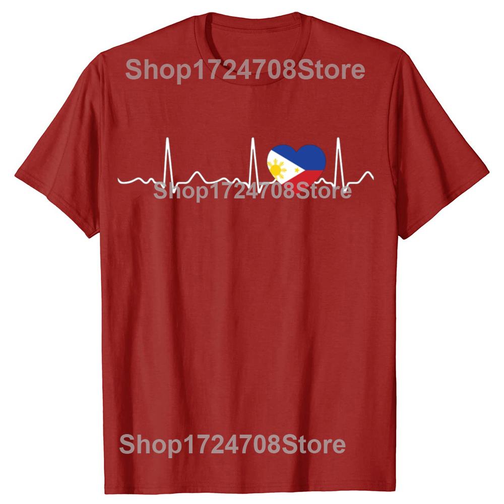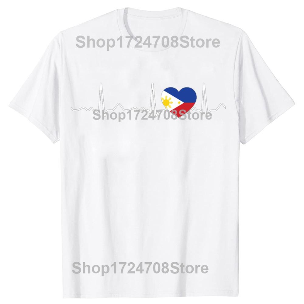 Funny Filipino Heartbeat I Love Philippines Flag Heart T-shirts Men Fashion Casual Tshirt 100% Cotton Loose Oversized T Shirt