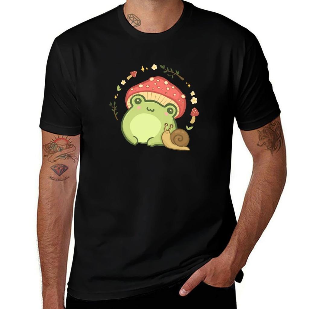 Super Cute Kawaii Frog with Toadstool Mushroom Hat Snail - Cottagecore Aesthetic Forggy Mushrooms - Amanita Muscaria Lov T-Shirt — купить товар онлайн с бесплатной доставкой по всему миру!
