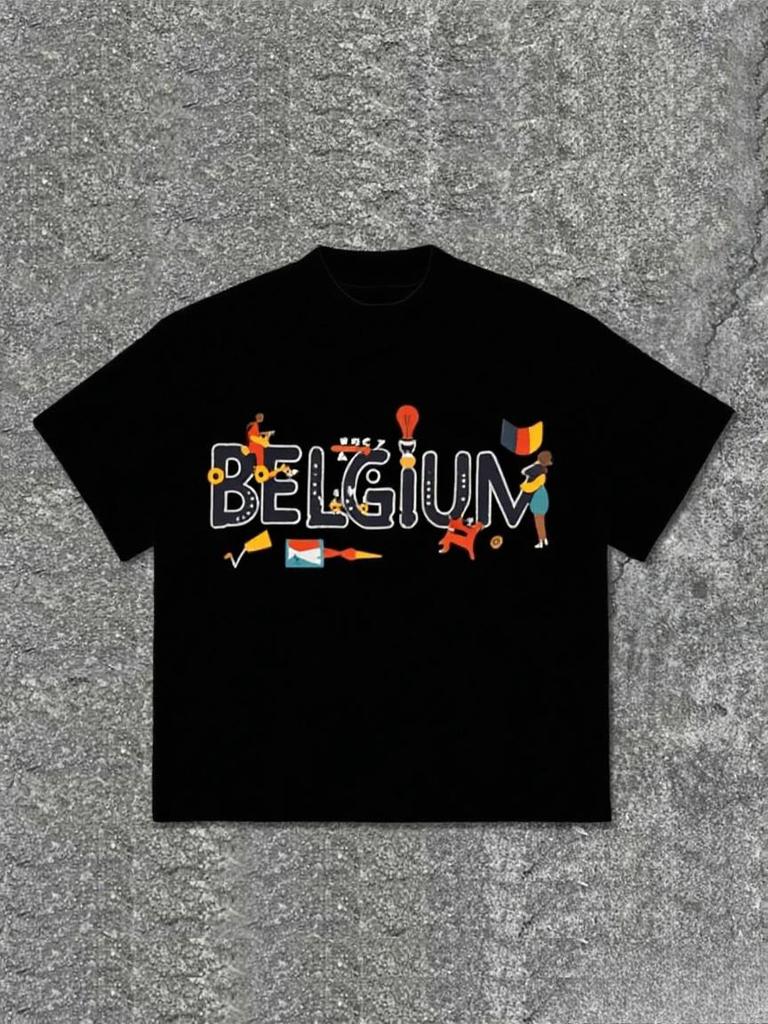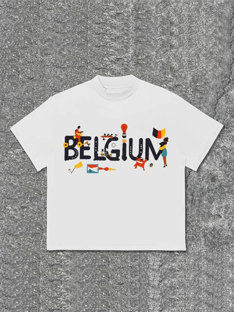 New Pure Cotton T-shirts with Creative Printed "Belgium" Patterns for Summer Beach Trips for Both Men and Women