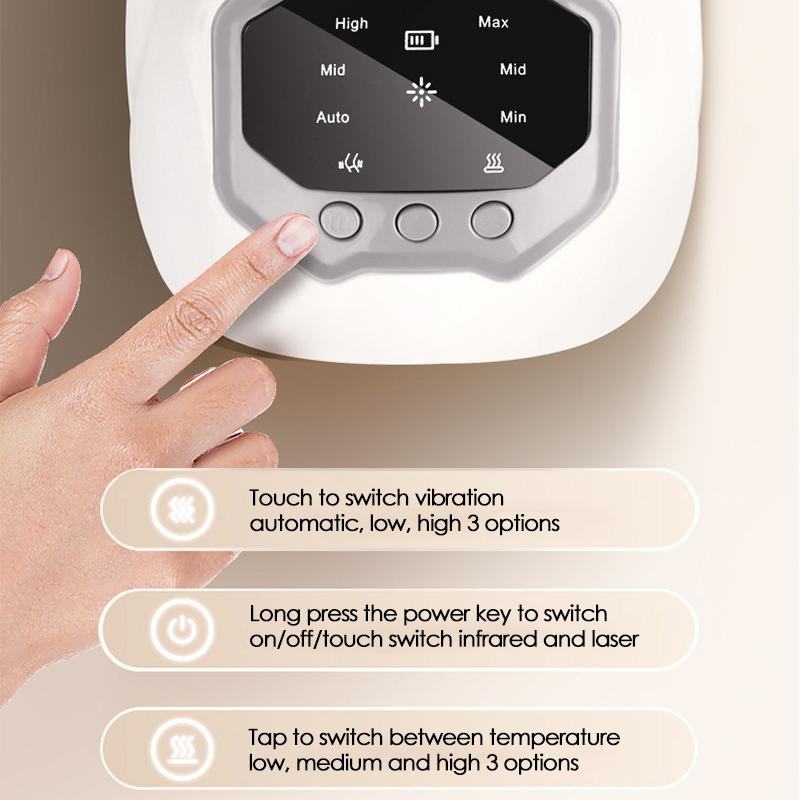 1. Высокочастотный вибрационный массаж: встроенный высокочастотный двухмоторный вибрационный массаж, трехуровневая регулировка интенсивности, эффективно снимает напряжение в коленном суставе, расслабляет скованные мышцы коленного сустава и отвечает потребностям различных групп людей.