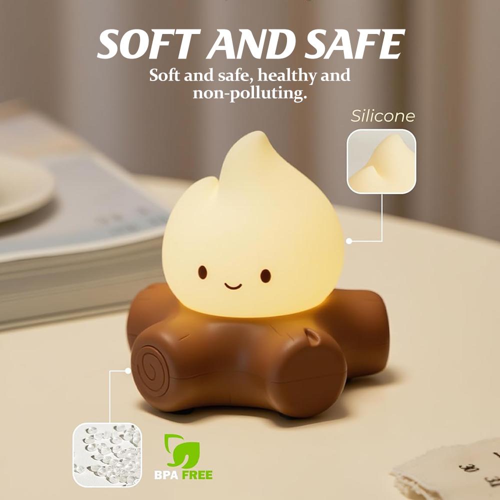 Cute Campfire Night Light Silicone Sleeping Nightlight With Stepless Dimming Rechargeable Beside Lamp For Halloween Decor