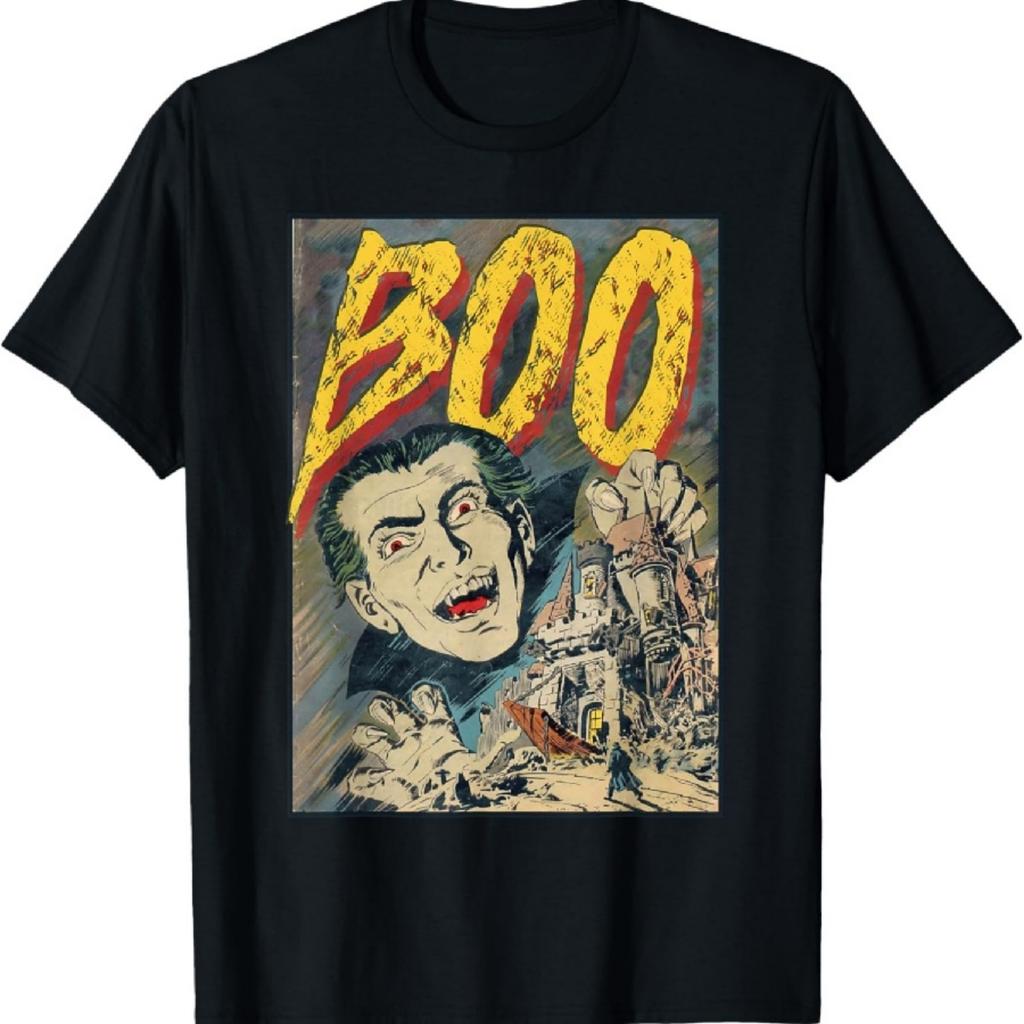 Винтажный Дракула Вампир Бу Ужасы Постер Хэллоуин Футболка1