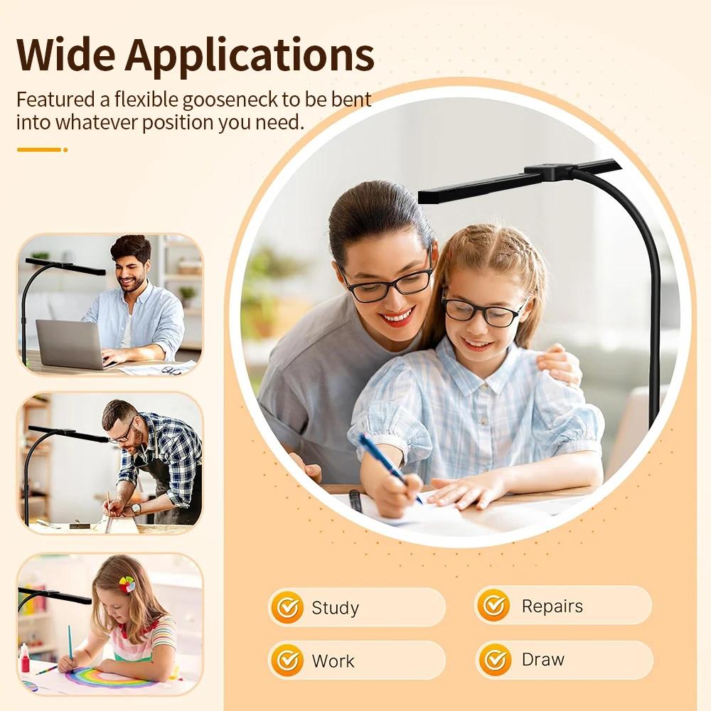 24 Вт Сверхяркая светодиодная настольная лампа с двумя головками, защита для глаз, лампа для чтения с пультом дистанционного управления, 5 настроек цветовой температуры, 10 уровней