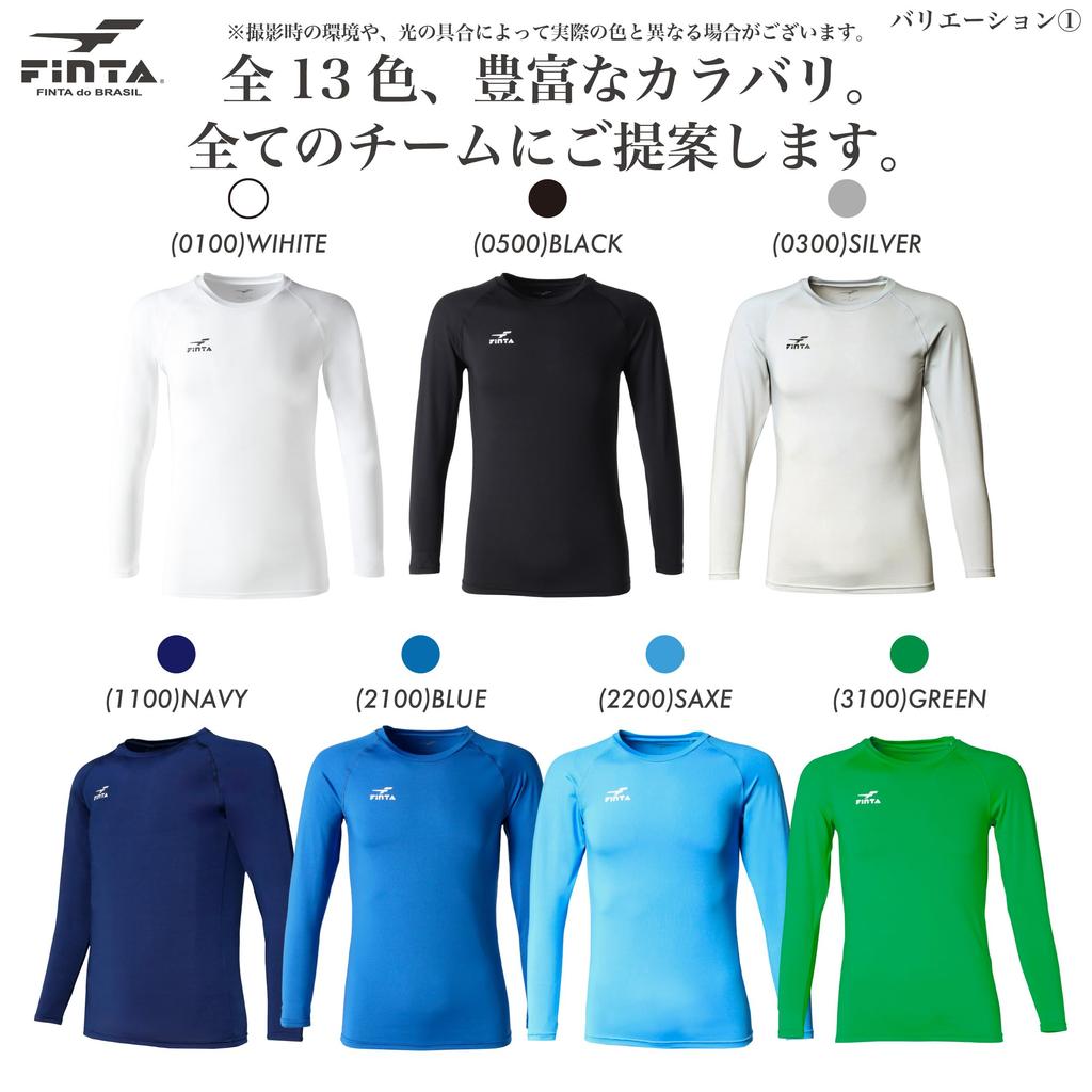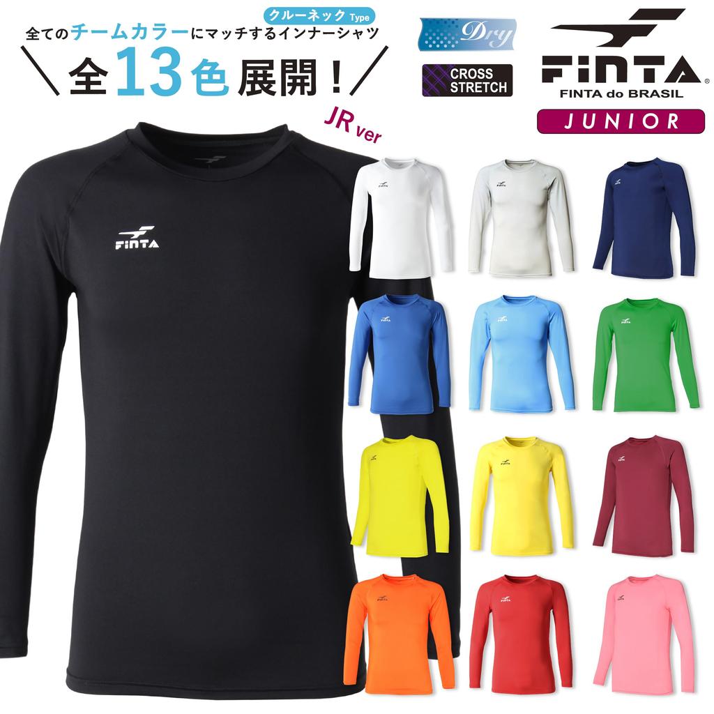 This junior-sized long-sleeved, crew-neck inner shirt from FINTA, a popular Brazilian soccer and futsal brand. The moderate stretch provides a comfortable fit for improved conditioning. Flat-seam stitching prevents seams from bulging, and the fabric is breathable for a comfortable fit. Available in nine colors to match a variety of uniform colors. Also available in men's size FT5997.
