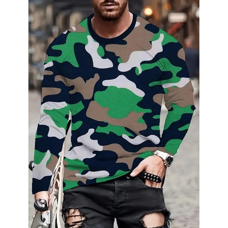 Камуфляжная повседневная мужская футболка с круглым вырезом, длинным рукавом, 3D-принтом, камуфляжная, спортивная, для фитнеса, для активного отдыха, свободная, дышащая, классическая футболка