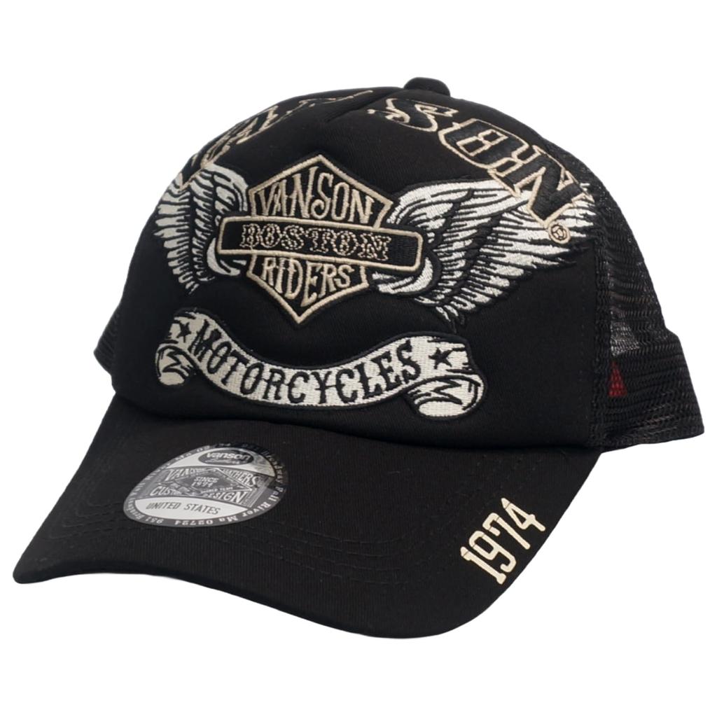 Vanson Men's Flying Emblem Embroidered Mesh Cap (nvcp-2507) (JP, Alphabet, Free Size, Black)