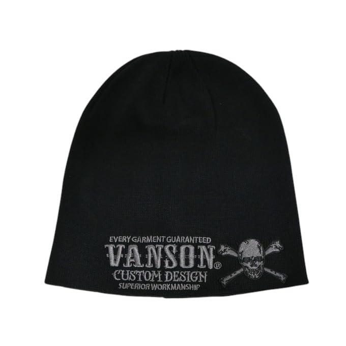 Vanson NVCP-2514 Хлопковая шапка-бини, вязаная шапка с дизайном черепа, мужская байкерская/мотоциклетная шапка (JP, Алфавит, Один размер, Черный-B)