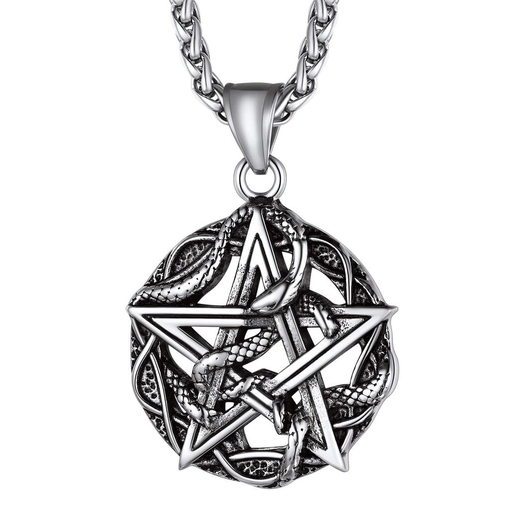 Richsteel Men's Stainless Steel Antique-Style Pentagram Snake Necklace Pendant, Hypoallergenic, Good Fortune Charm, Accessory