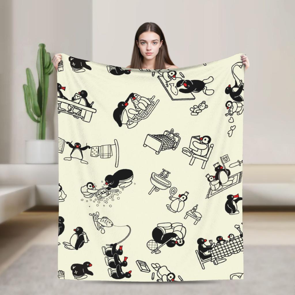 Noot Pingu Fleece Throw Blankets Penguin Cartoon Blankets for Bedding Couch Ultra-Soft Bedding Throws