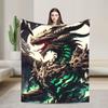 Фланелевое одеяло с тематикой черного дракона, машинная стирка, все сезоны, подходит для спальни, автомобиля, улицы, дивана, путешествий, офиса, кемпинга, подарок