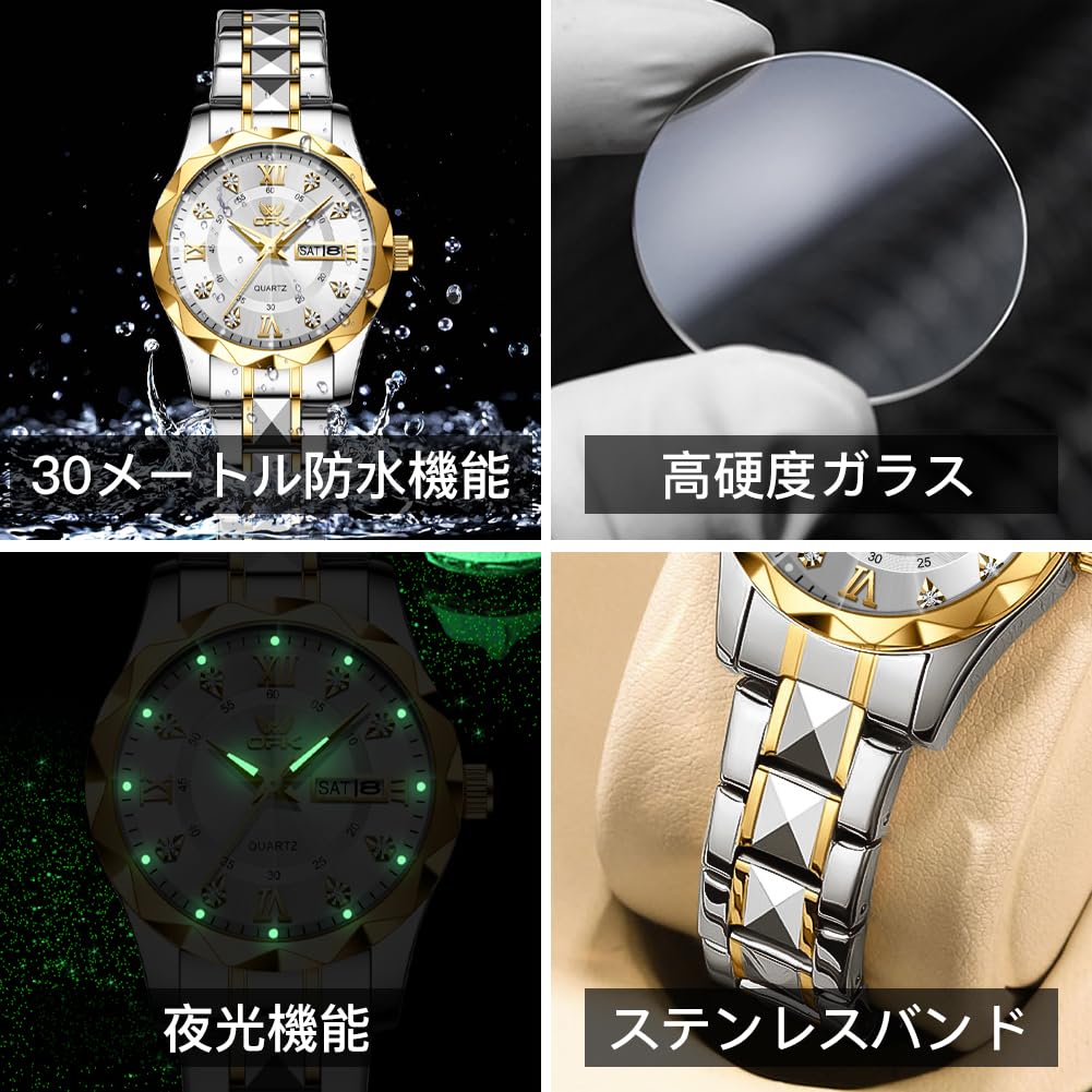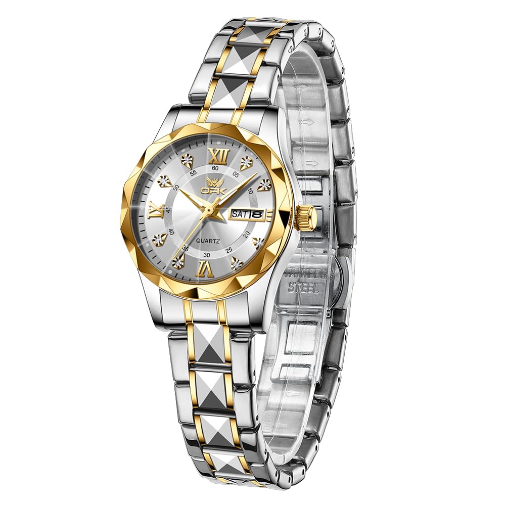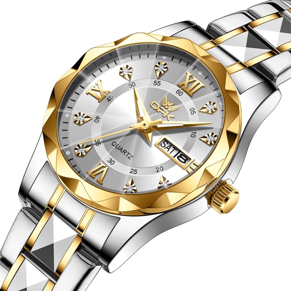 OPK Women's Quartz Wristwatch, Popular, Simple, Feminine, Gorgeous, Lightweight, Easy to Read, Waterproof, Luminous, Gold and White
