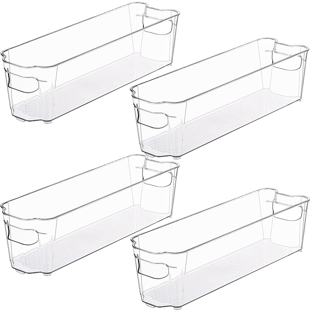 [Versatile Uses] These storage cases can be used for a variety of purposes, including organizing your refrigerator, toiletries, cosmetics, stationery, and small items. This set of 4 allows you to use them for different purposes.