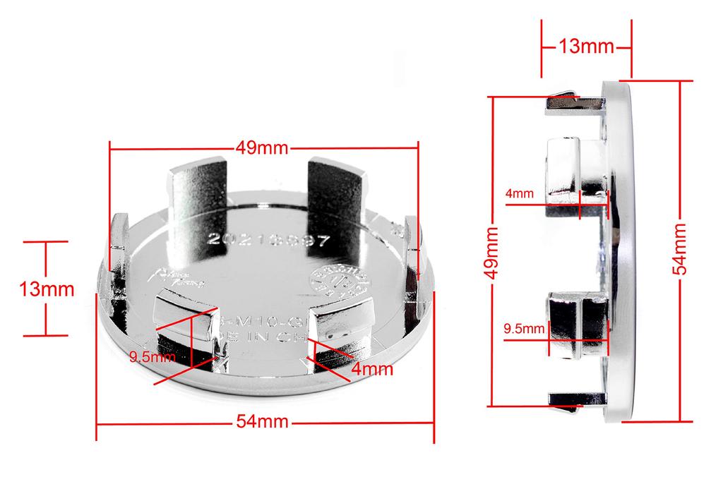 🚗Size: Outer Diameter: 54mm, Center Bore Diameter: 49mm, Labeling Diameter: 50mm, Height: 13.5mm, Tab Length: 9.5mm, Tabs: 6. *Note: Please confirm fitment and size before purchasing. If you are unsure, please contact us.
