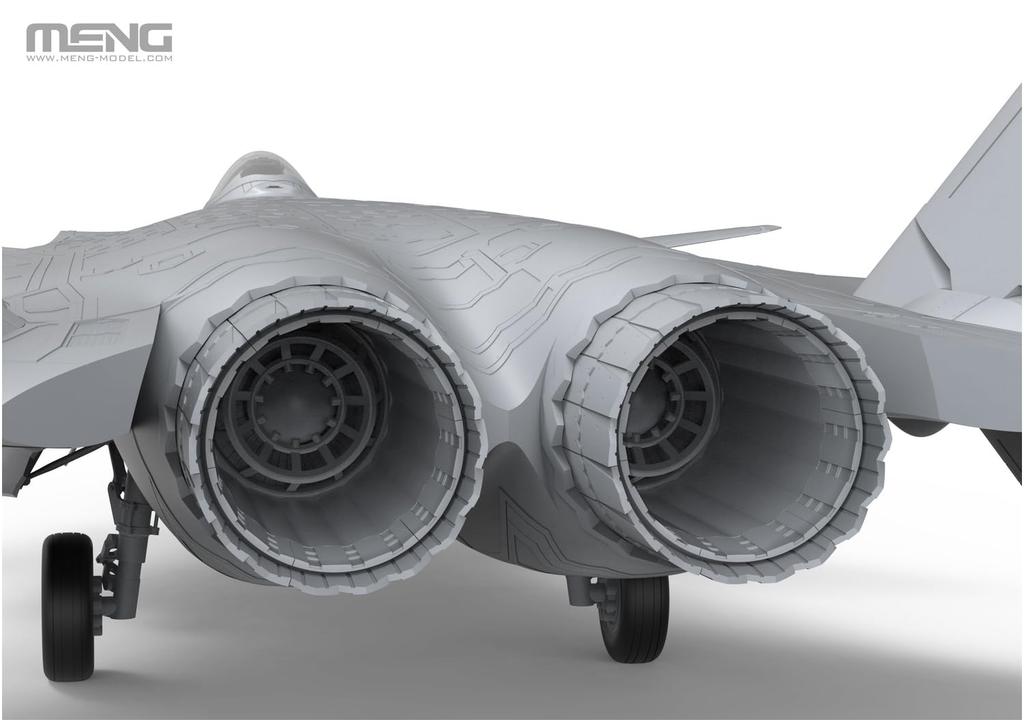 The canards and vertical stabilizer are articulated. The curved shape of the DSI air intake, landing gear well, under-fuselage bomb bay, WS-15 "Emei" engine exhaust nozzle, and internal duct and fan details are precisely reproduced.