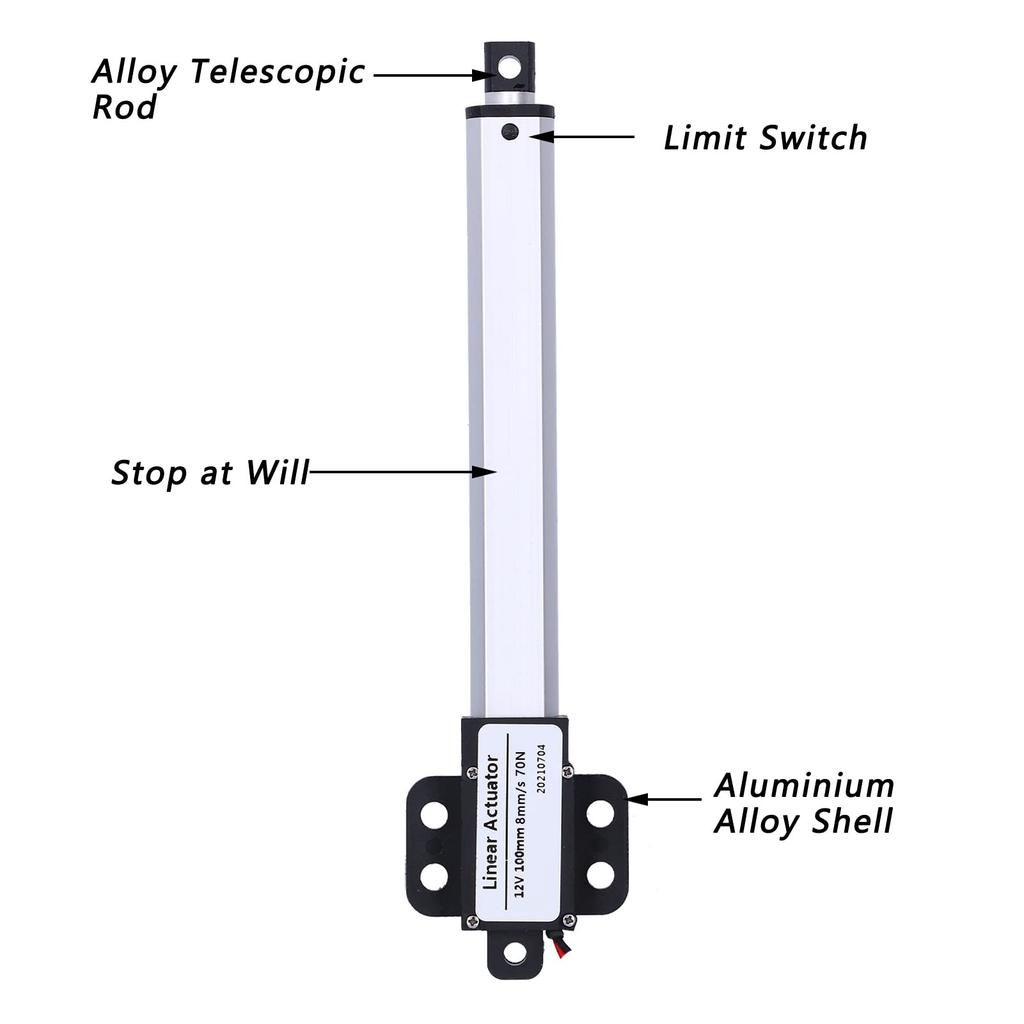 Линейный привод 100мм 12В Напряжение питания Ход Микролинейный привод Низкий уровень шума Защита от короткого замыкания Линейный привод (Ход 100мм-8мм/)