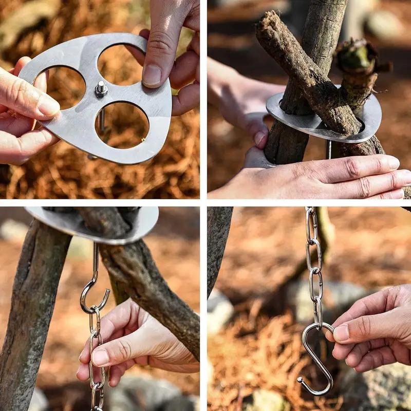 Над костром для кемпинга, Тренога для барбекю и пикника из нержавеющей стали, Регулируемый подвесной котелок, Принадлежности для пикника, Подставка для костра