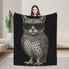 Моё тотемное животное Забавный мем с мяуканьем Плед Супер тёплый кот с совой Мем мозговая депрессия Плед Зимний дорожный диван Кровать Покрывало