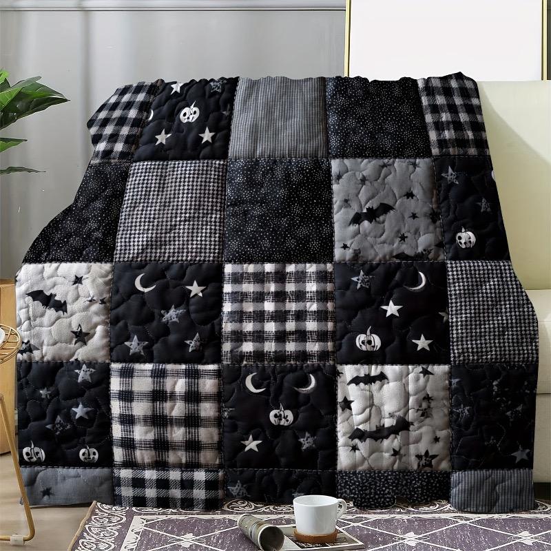 1 шт. готическое черно-белое клетчатое фланелевое одеяло - мягкое и удобное, теплое круглый год