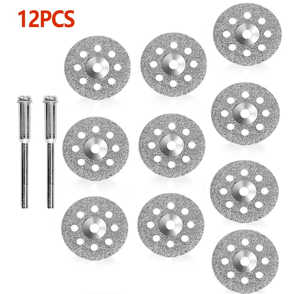 12Pcs Diamond Cutting Wheel Cut Off Discs 22mm Coated Rotary Tool WITH/ Mandrel 3mm Metal Marble DIY Tools Accessories