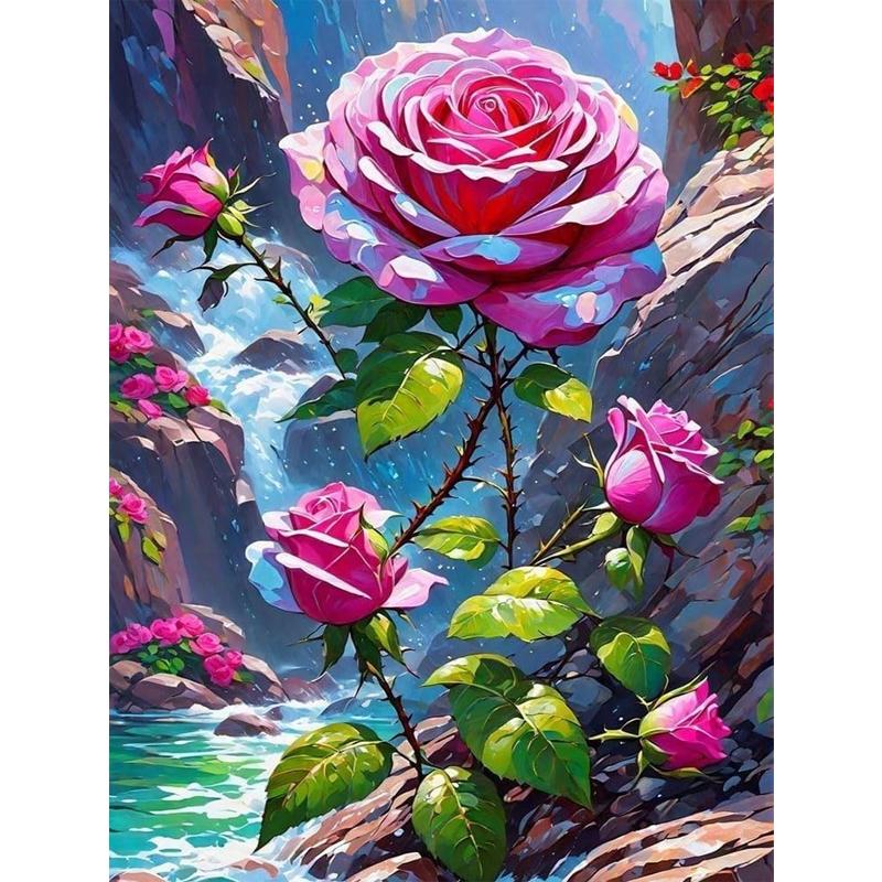 5D DIY Алмазная живопись полным кругом «Розовый пейзаж, нарисованный вручную» Вышивка крестом Домашний декор Подарок