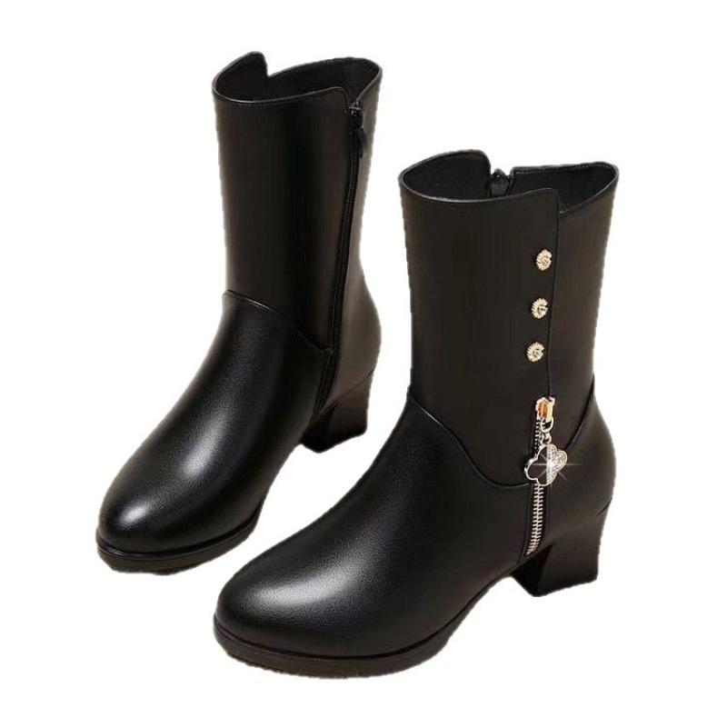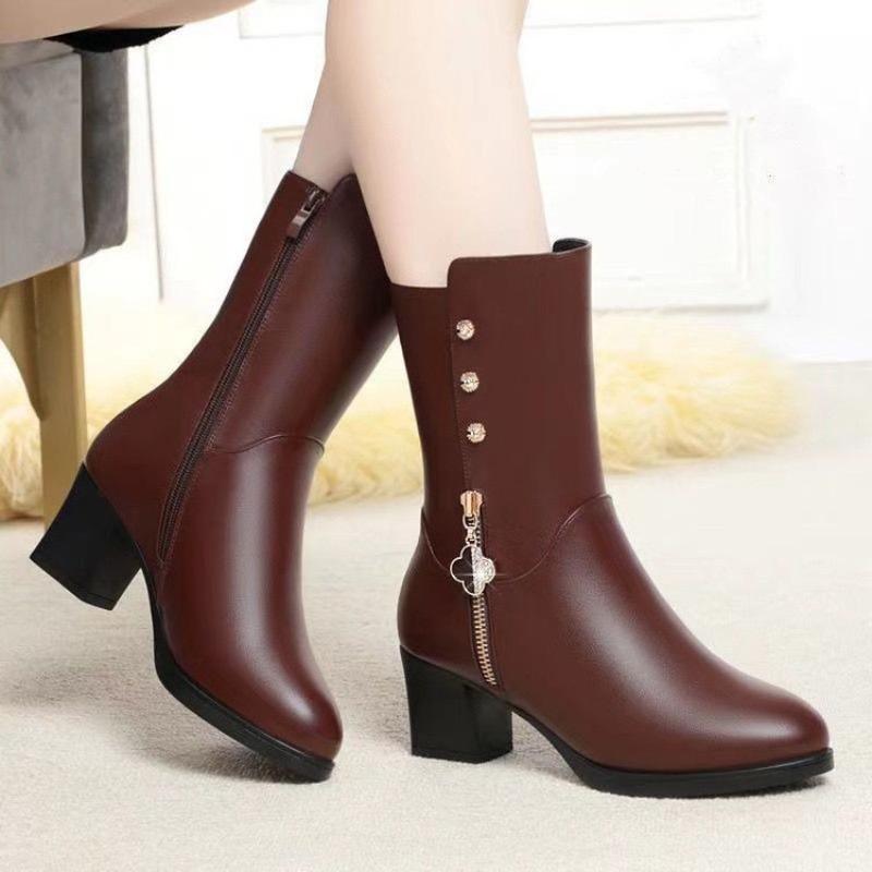 Обувь нового стиля: Флис, Утепленные, Удобные и Теплые Ботинки до середины икры, Повседневные Женские Кожаные Ботинки