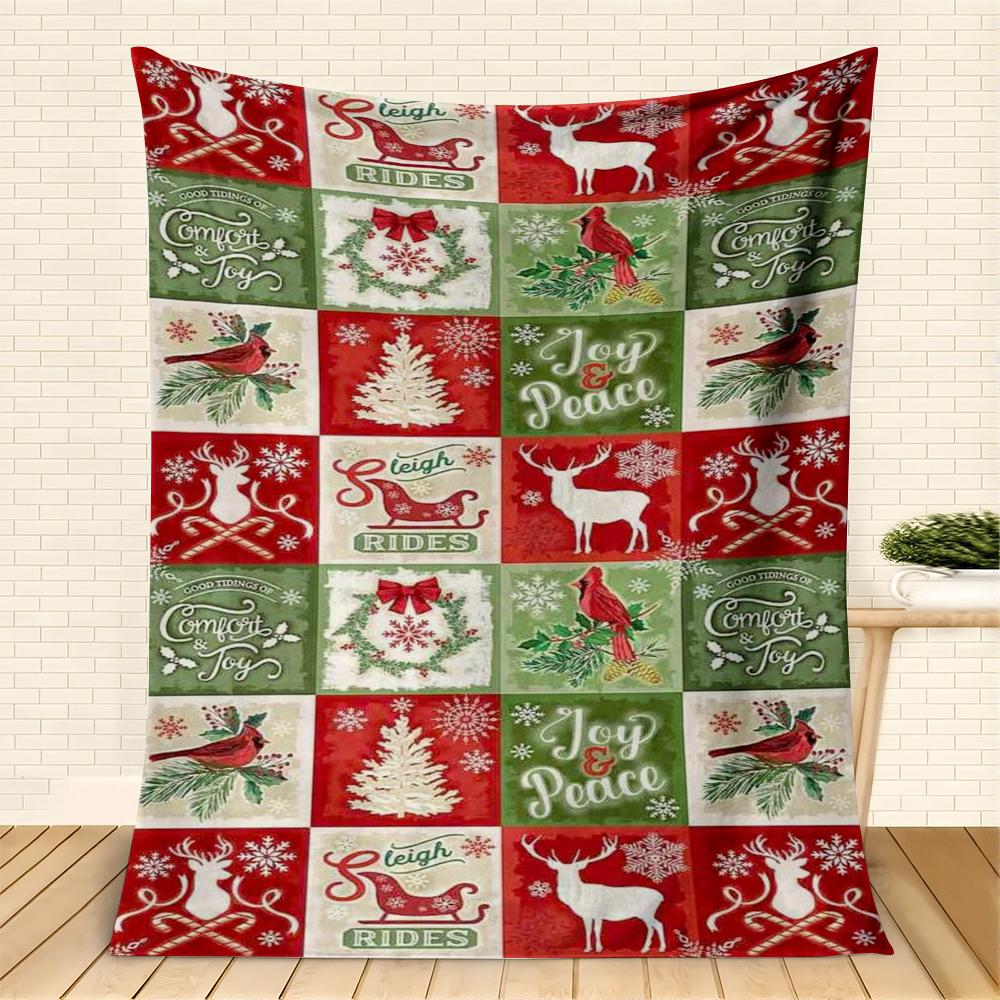 Рождественский лоскутный флисовый плед с рисунком оленя, кардинала и елки, мягкий и уютный плед для дивана, отдыха, идеальные подарки